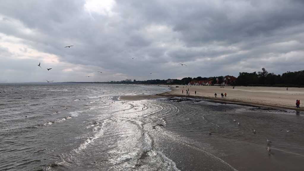 Detta medan jag och Anne tog tåget till Sopot. En lite höstruggigt, blåsig dag, men vi tog en promenad runt i den gamla kurorten som, vad jag tänker mig, är en underbar sommarort. Det finns en lång, fin strand med Europas längsta träpir (Molo) – 511,5 meter, Krzywy Domek (krokiga huset), fyren och en härlig bryggeripub (Browar Miejski Sopot) där vi stannade för lunch.